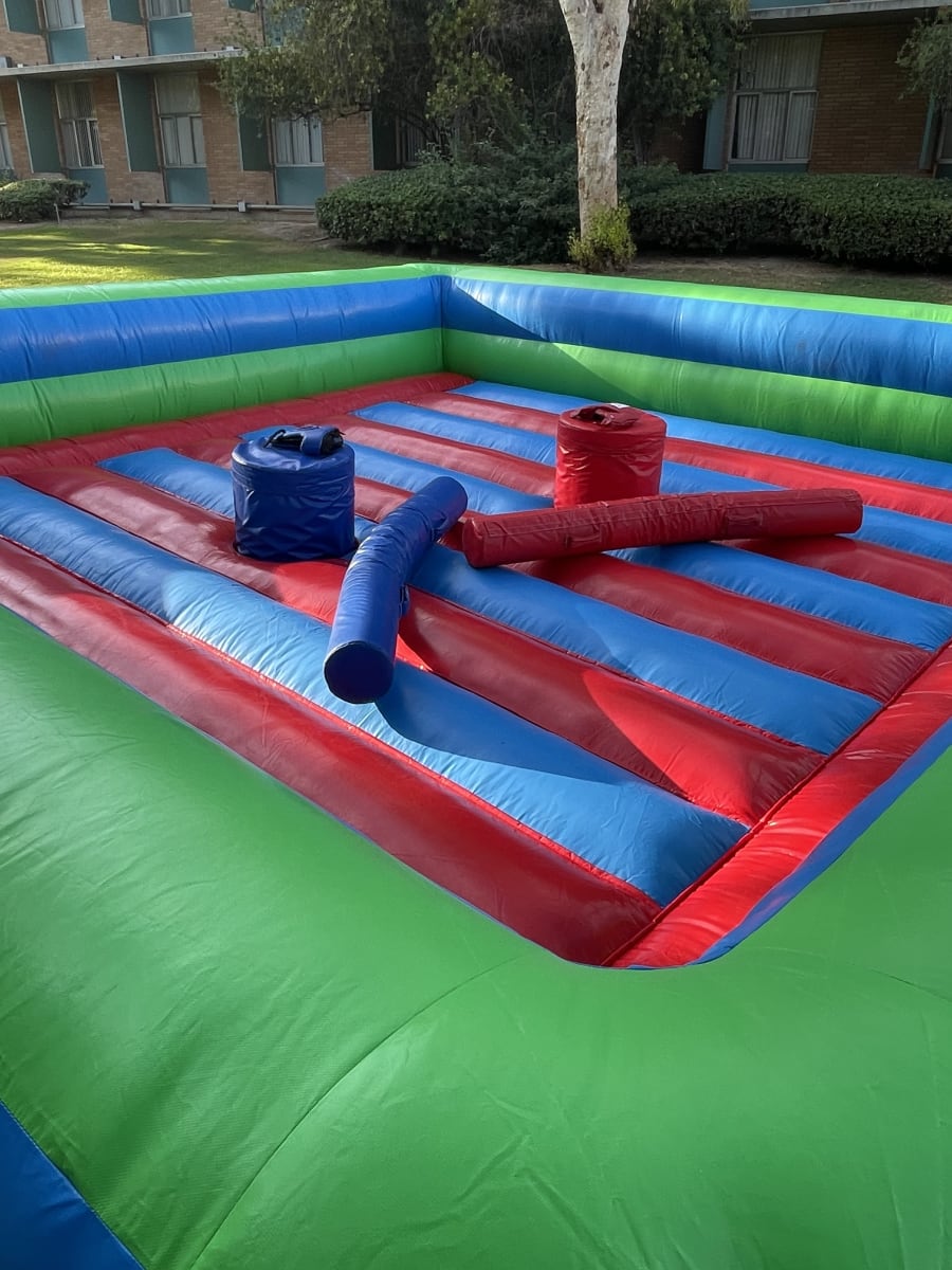 Get ready to unleash the competitive spirit with our inflatable Joust Arena. If you're looking to create some friendly competition and see who will be the last one standing, this is the perfect attraction for your event. The Joust Arena brings excitement and entertainment as participants engage in epic jousting battles, trying to knock their opponents off their pedestals. It's a thrilling experience that will keep all your guests engaged and entertained. With a space requirement of 25'x25', this inflatable arena can fit into various event setups. Get ready to witness some epic jousting showdowns and create lasting memories at your next gathering.