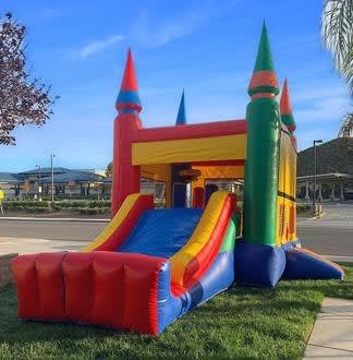 Jump, climb, shoot hoops, encounter surprise pop-ups, and slide your way to a fantastic time! The 5-in-1 Mini Combo packs a whole lot of adventure into one exciting attraction. Kids can bounce around in the spacious jumping area, conquer the climbing wall, test their basketball skills at the ball hoop, navigate through unexpected pop-up obstacles, and finally, slide down the thrilling slide.