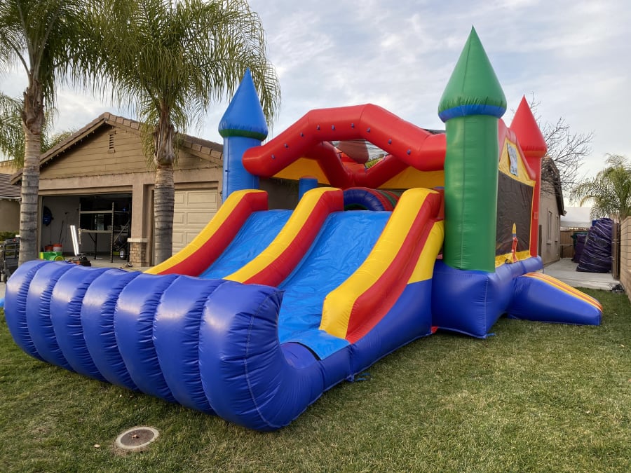 The King's Castle Combo is a true crowd-pleaser and one of our top picks. This expansive inflatable unit offers a variety of exciting features, including a spacious 15x15 Bounce House where kids can jump and play to their heart's content. The large crawl-through tunnel adds an element of adventure, while the climber provides a thrilling challenge for little explorers. With the inflatable pop-ups scattered throughout, kids can test their agility and have a blast maneuvering through the obstacles. And let's not forget the highlight of the combo—the double lane slide, where children can race and slide to their heart's delight. Whether you choose to use it as a dry unit or add the splash pool for a waterslide experience, the King's Castle Combo guarantees hours of fun and excitement for all.