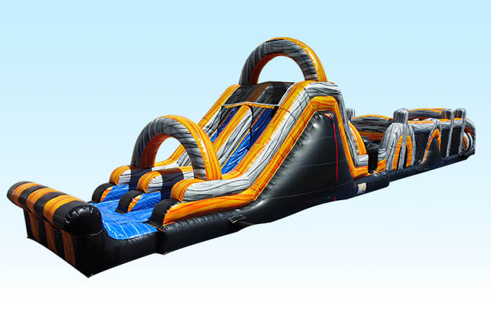 Get ready to gather your guests and ignite the spirit of fun at your next event with our thrilling 68-foot obstacle course featuring a dual-lane slide. This impressive inflatable is designed to bring out the competitive edge in everyone as they race, jump, crawl, climb, and slide their way to the finish line. It's a high-energy adventure that guarantees excitement and friendly competition. Whether you're hosting a birthday party, a company picnic, or a community gathering, this obstacle course promises non-stop action and entertainment for all. So lace up your shoes, unleash your inner athlete, and get ready for an unforgettable experience of running, jumping, crawling, climbing, and sliding that will have everyone vying to be crowned the ultimate champion.