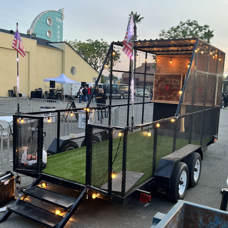 Introducing our newest and most exhilarating addition to the rental experience: the Mobile Axe Throwing Trailer! Elevate your event to a whole new level of excitement with this unique attraction on wheels. Whether it's a corporate team-building retreat, a lively festival, or a backyard gathering with friends, our mobile axe throwing trailer brings the thrill of axe throwing right to your doorstep. Designed with safety and fun in mind, the trailer features professional axe throwing lanes, certified coaches, and all the necessary equipment. Unleash your inner lumberjack and create unforgettable memories as you hit the bullseye, cheer on your friends, and embrace the competitive spirit. Book the Mobile Axe Throwing Trailer today and let the good times roll – or, in this case, throw!