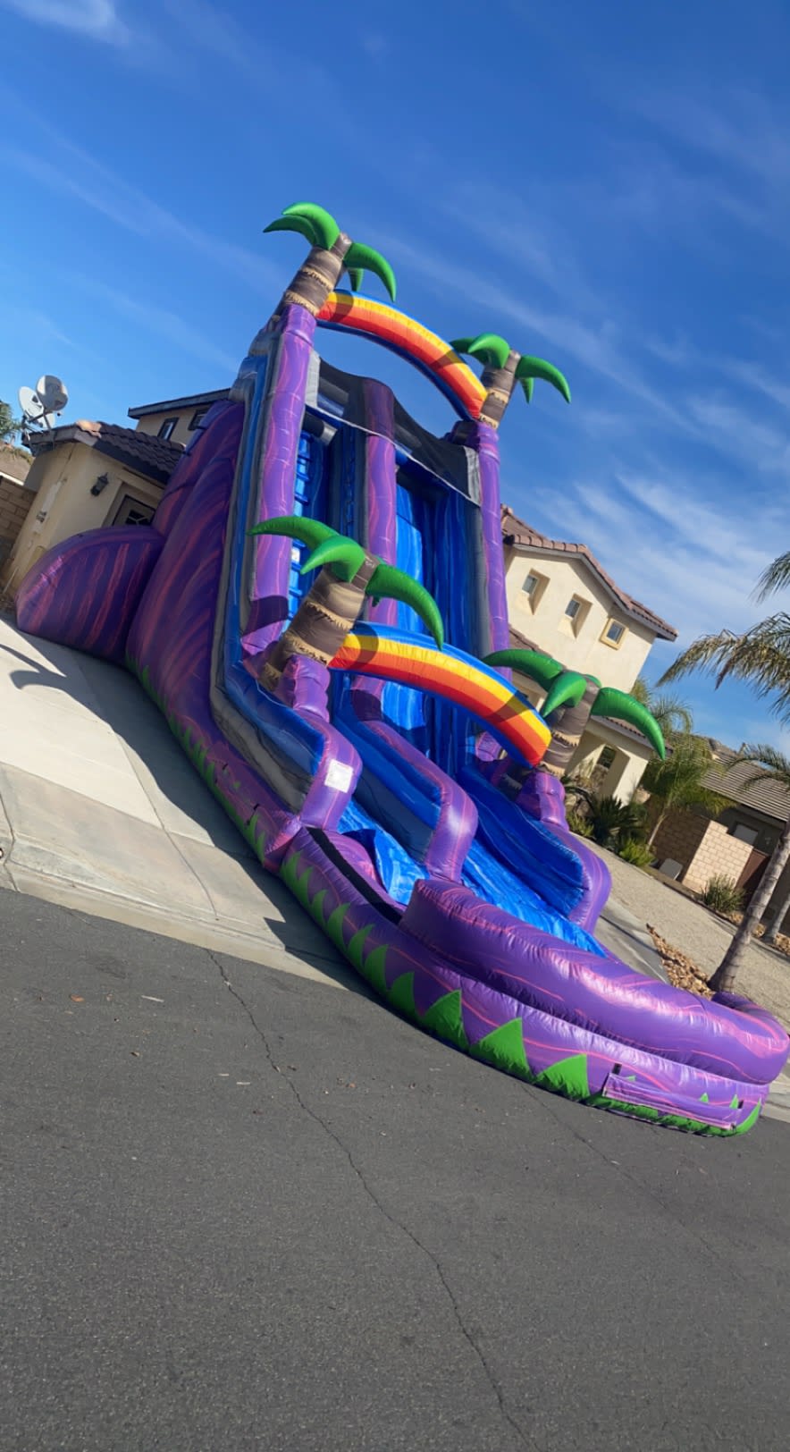 To get the party started, all you need is access to a dedicated electrical outlet and a garden hose. With these essentials in place, you can create a thrilling water slide adventure for everyone to enjoy. However, please note that this slide is both large and tall, so it's crucial to measure your space carefully to ensure you have adequate clearance. Additionally, keep in mind that the unit is quite heavy and challenging to move, so it's best suited for easily accessible areas like front yards and driveways.