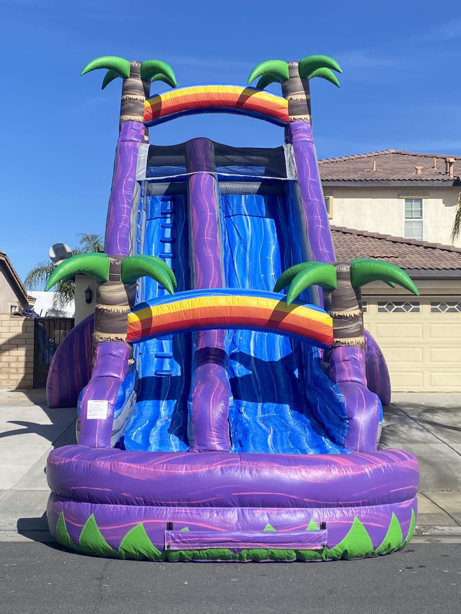 The dimensions of this magnificent water slide are 35 feet in length, 13 feet in width, and an impressive 22 feet in height.